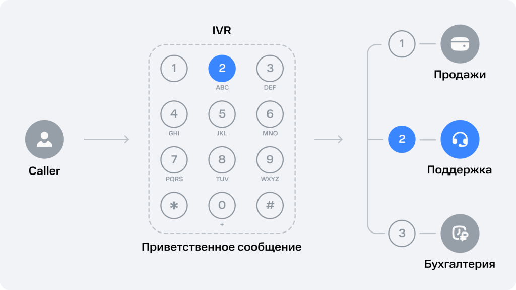 Interactive Voice Response — интерактивное голосовое меню — предлагает пользователям выбрать необходимый отдел или услугу. Робот сообщает, на какую цифру нажать или какую фразу произнести для перенаправления звонка компетентному оператору.