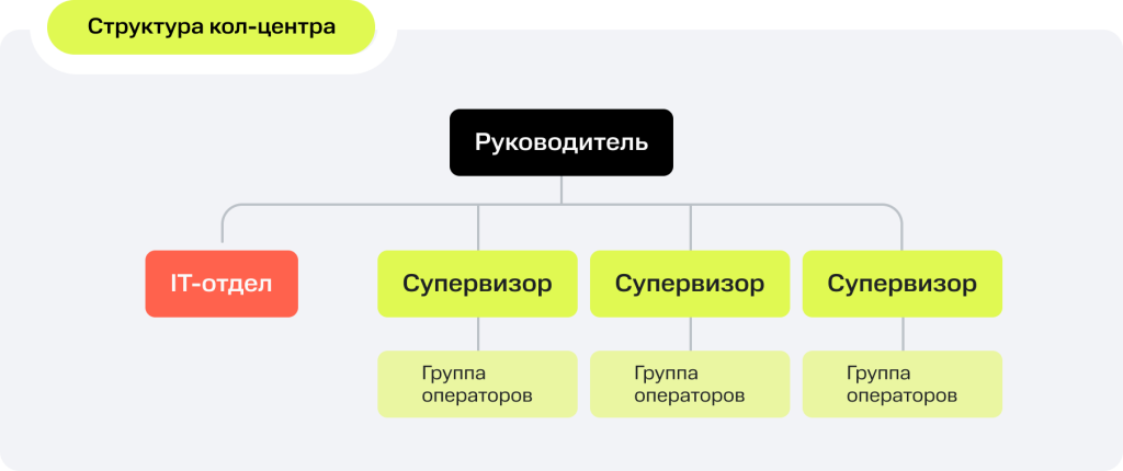 Операторы. Каждая группа работает над определённой категорией задач: техподдержка, продажи, подтверждение записи. Опыт и компетенции сотрудников могут быть разными, поэтому важно организовать иерархию и взаимную поддержку.